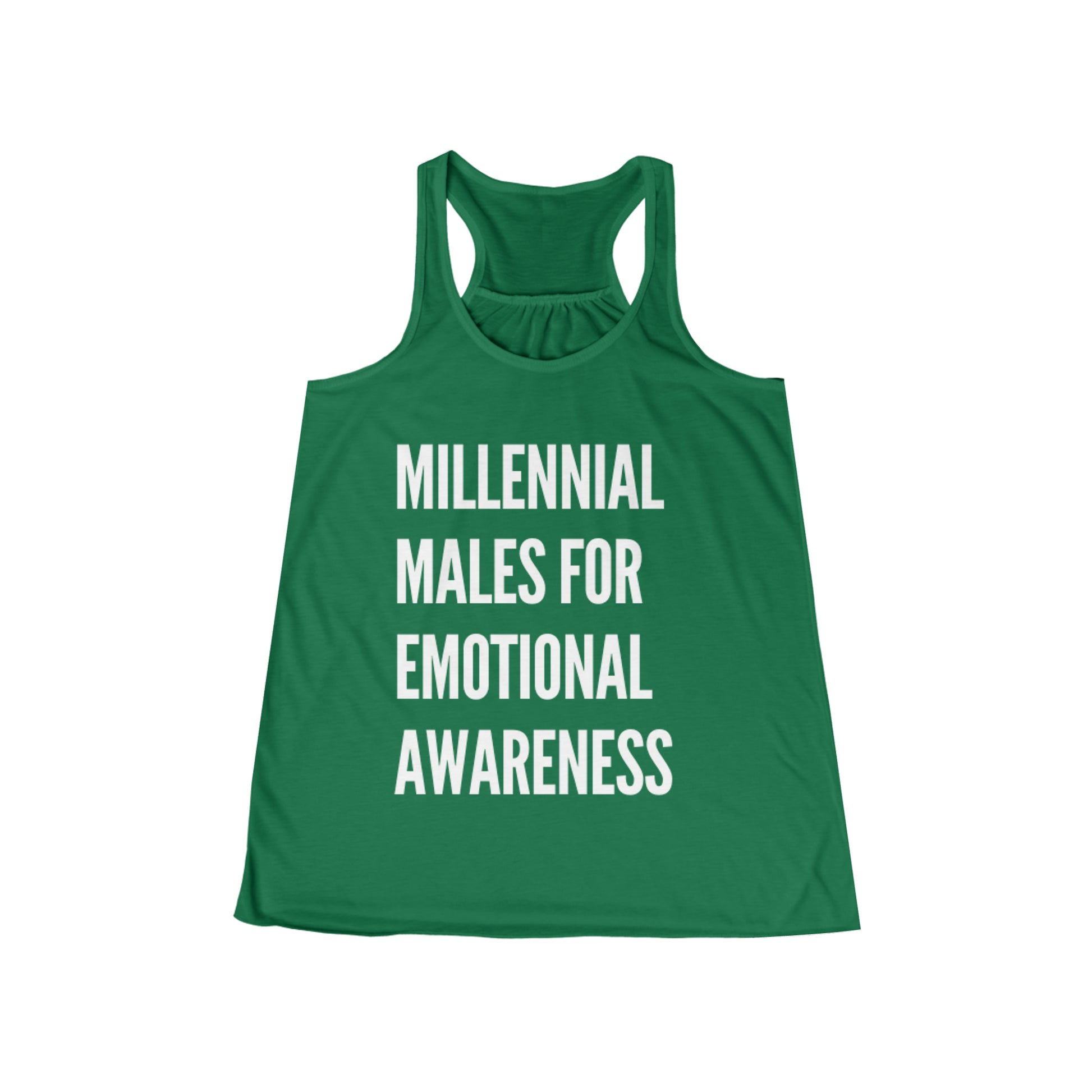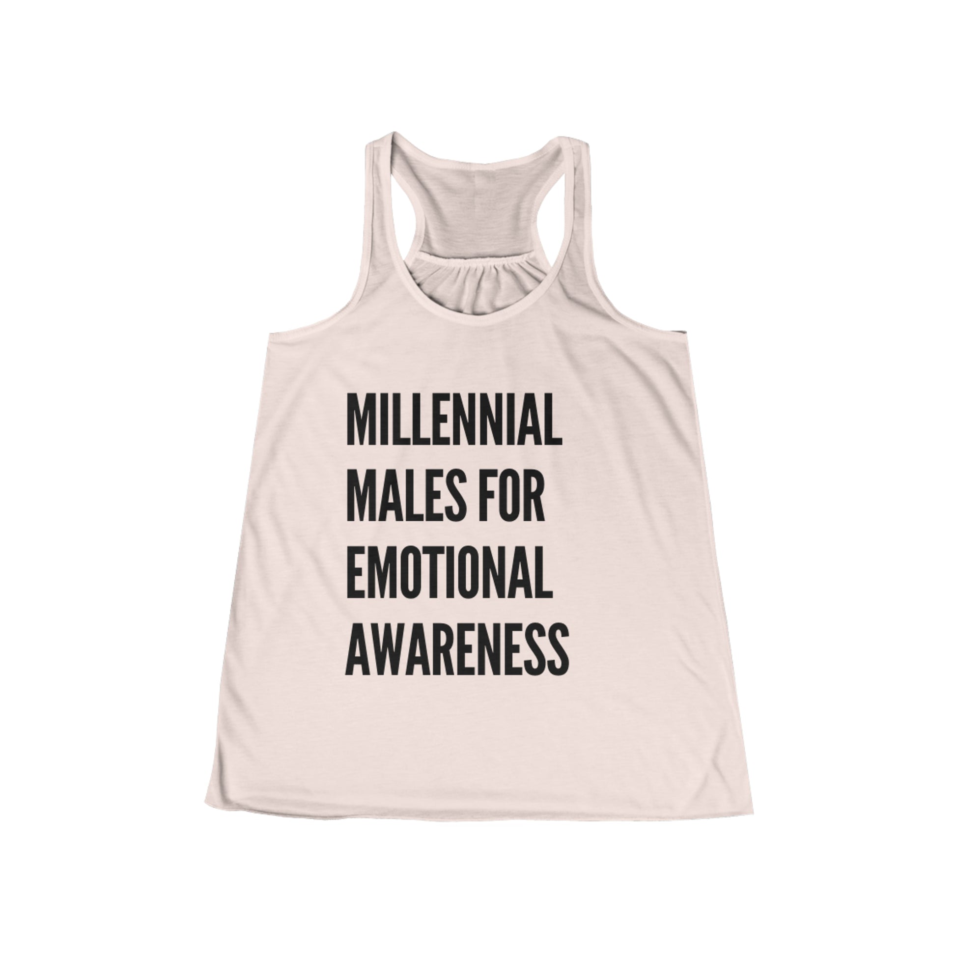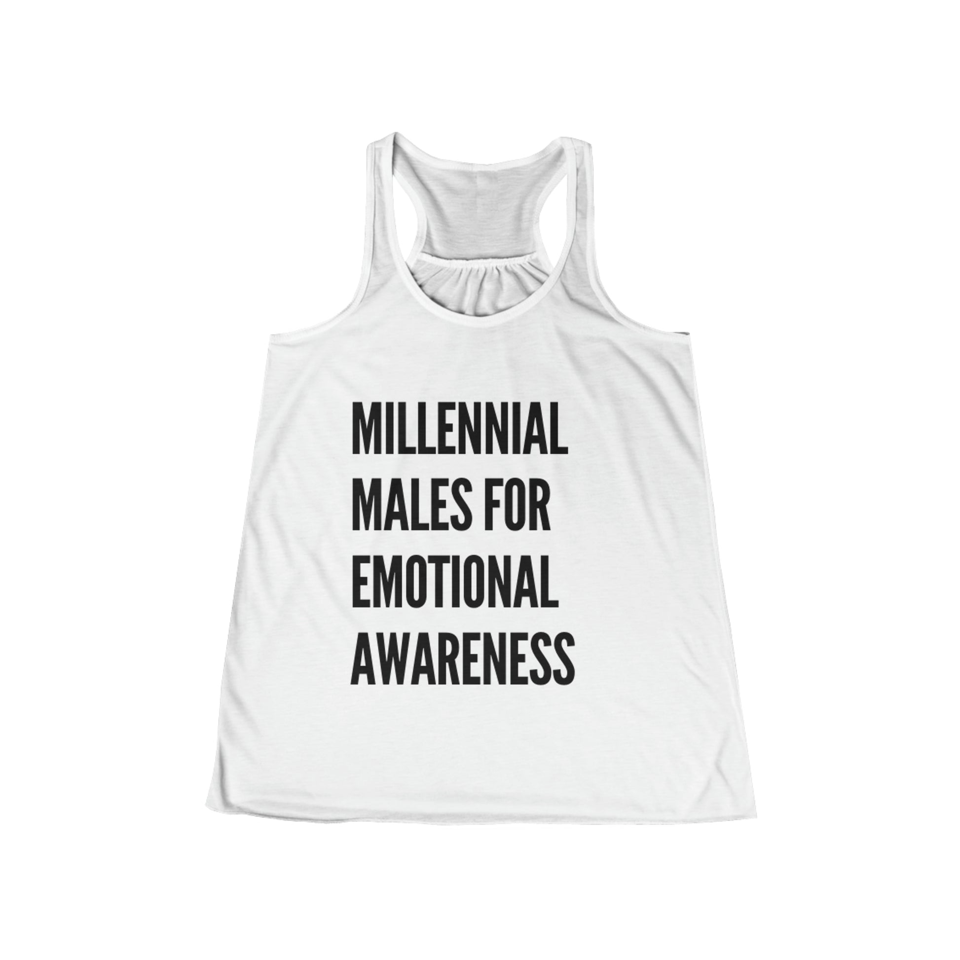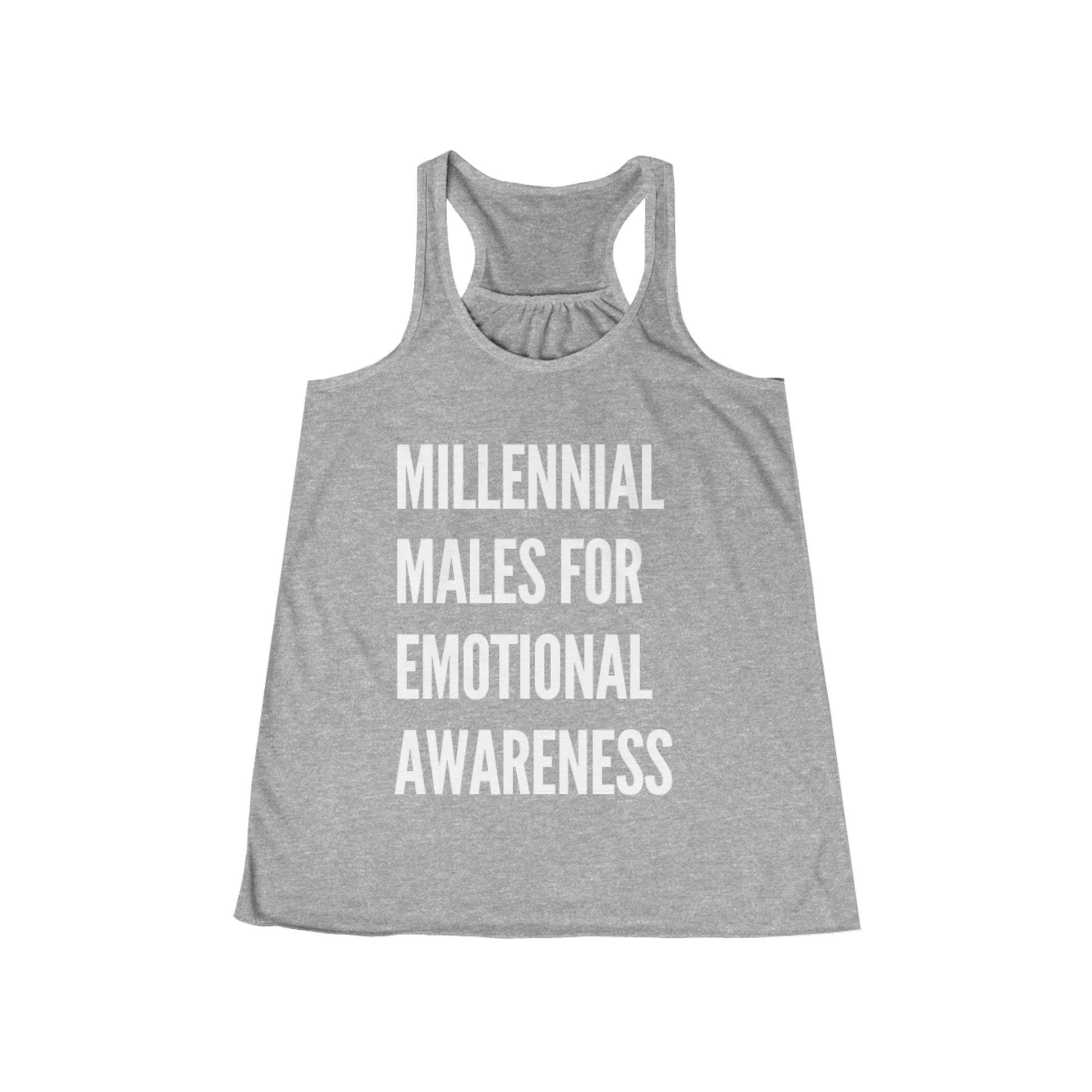 Designed for both comfort and style, our flowy racerback tank offers a relaxed fit and a flattering scoop neck, making it a versatile choice for various occasions. The "Millennial Males for Emotional Awareness" message boldly proclaims the importance of embracing vulnerability and challenging stereotypes surrounding men's emotions.