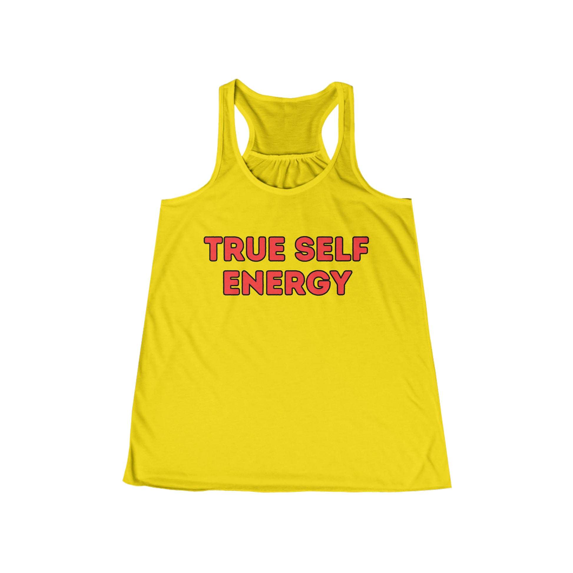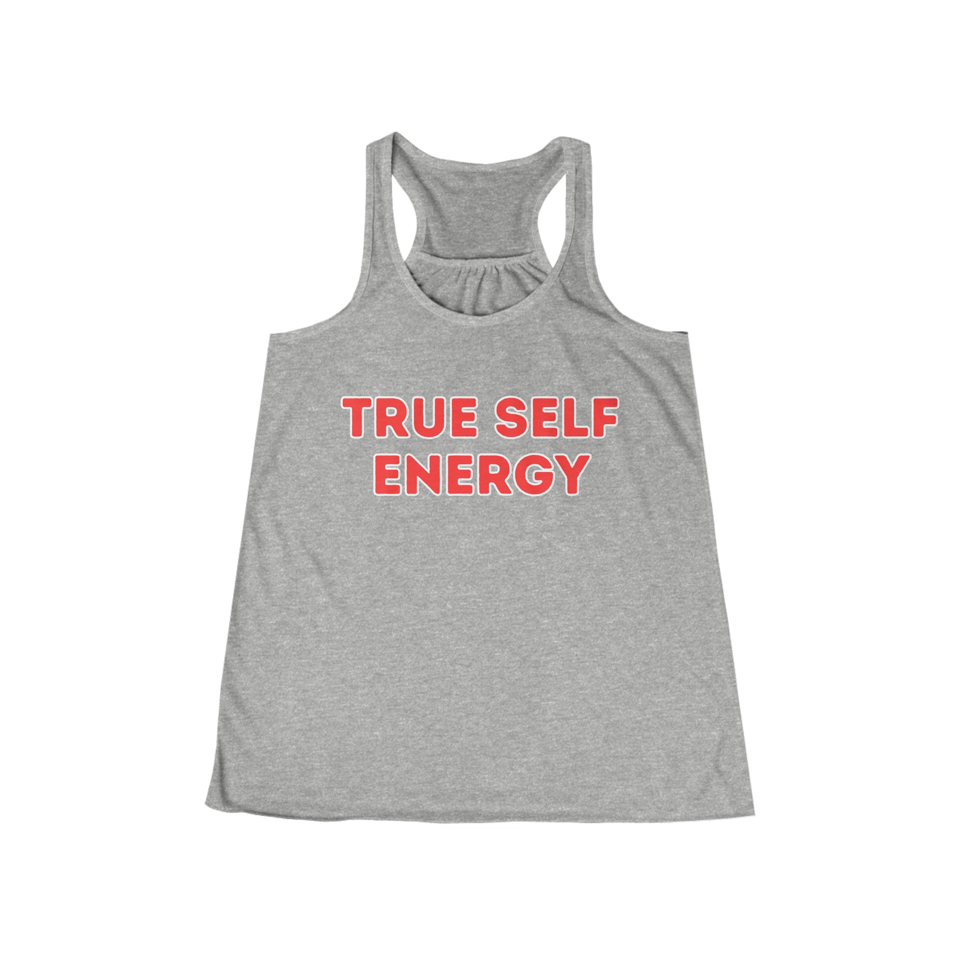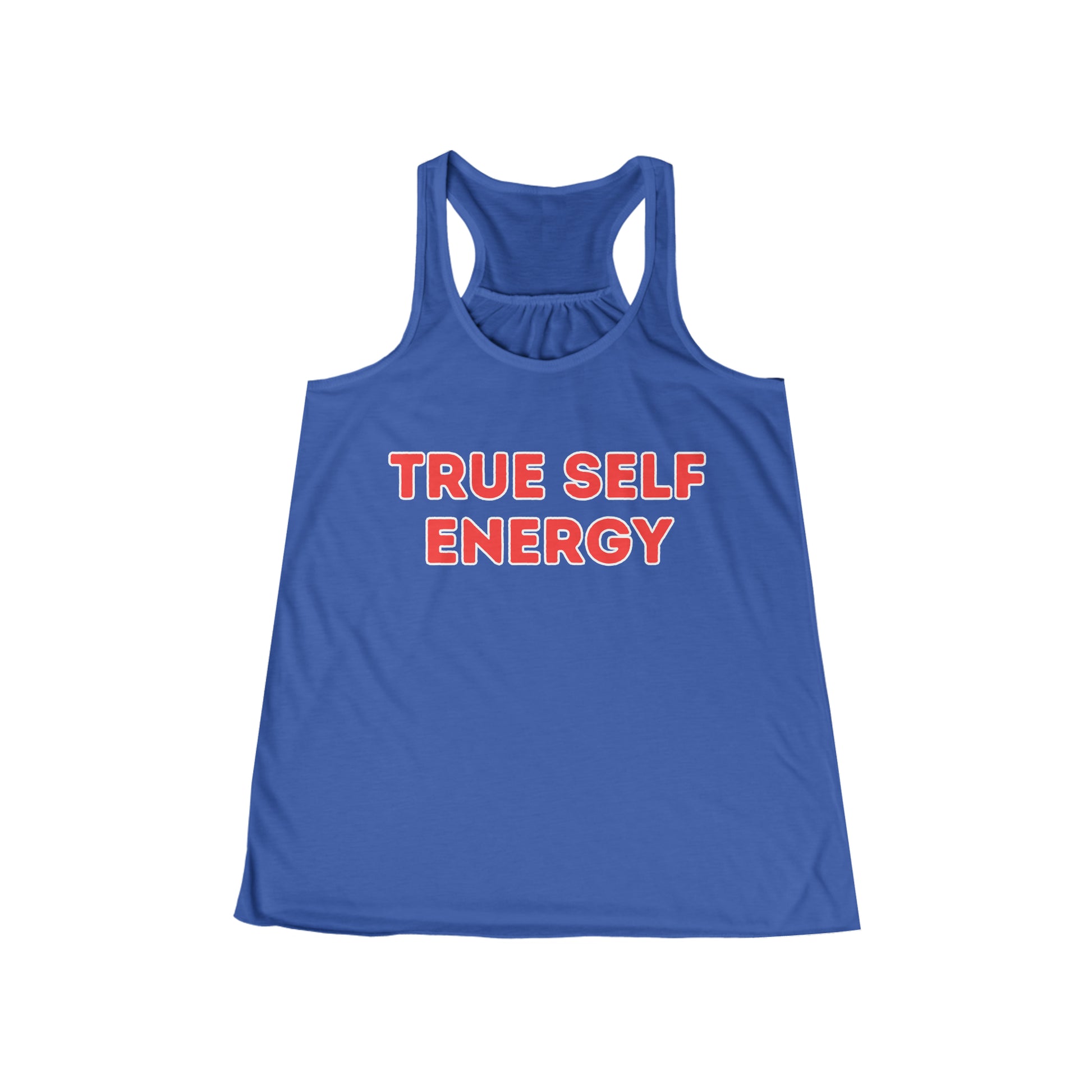 Designed for both comfort and style, our flowy racerback tank offers a relaxed fit and a flattering scoop neck, making it a versatile choice for various occasions. The "True Self Energy" message is a reminder that your authenticity is your greatest asset, and it's something to be celebrated.