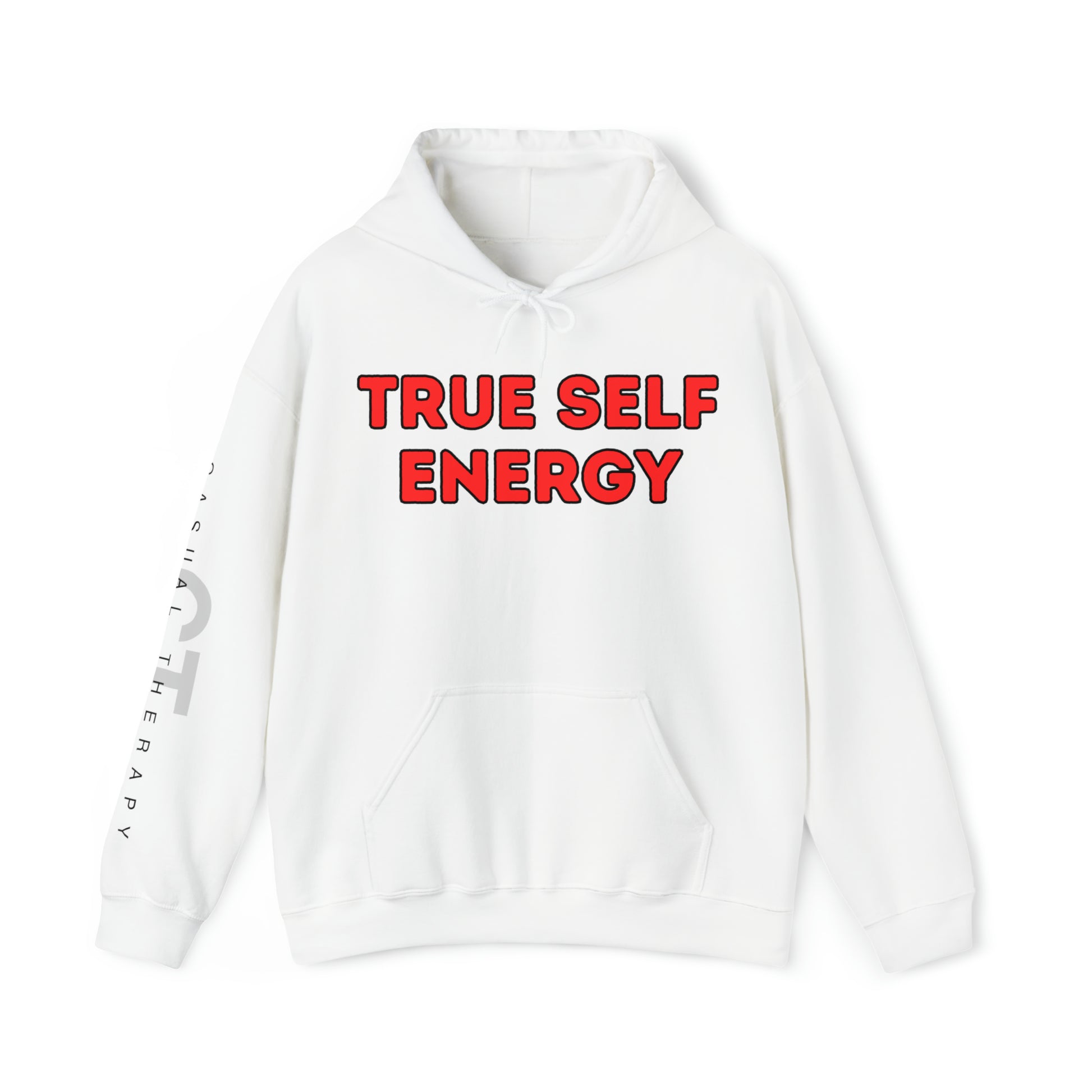 The "True Self Energy" Hoodie by Casual Therapy is a powerful reminder that embracing your authentic self is a source of inner strength and positive energy.